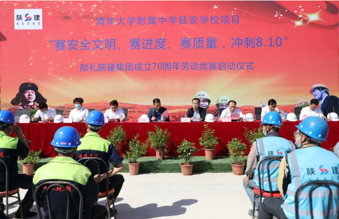 5月28日,陜建十三建公司清華大學附屬中學延安學校項目舉行“賽安全文明、賽進度、賽質(zhì)量,沖刺8.10”獻禮陜建集團成立70周年勞動競賽啟動儀式。