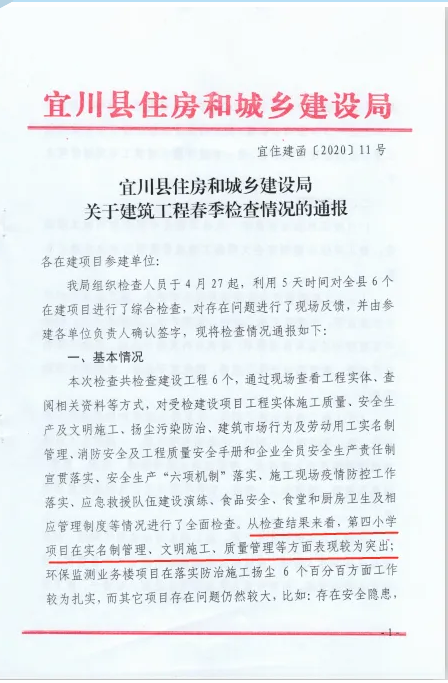 近日,從宜川縣住房和城鄉(xiāng)建設(shè)局傳來喜訊,陜建十三建公司承建的宜川縣第四小學(xué)項(xiàng)目在全縣在建項(xiàng)目春季綜合檢查中成績優(yōu)異,受到通報(bào)表揚(yáng)。