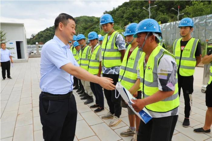7月20日,陜建集團(tuán)企業(yè)發(fā)展部部長齊偉紅,后勤事務(wù)管理中心副主任張棟一行來到集團(tuán)寶塔區(qū)水系連通及農(nóng)村水系綜合整治試點(diǎn)項(xiàng)目開展“夏送清涼”慰問活動(dòng),集團(tuán)副總經(jīng)理鐘卓寶、張鑫偉陪同。