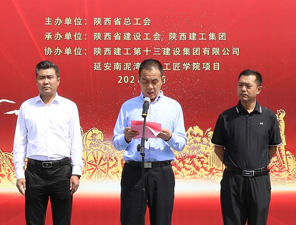 陜西建工集團(tuán)黨委常委、副總經(jīng)理劉小強(qiáng)在致辭中表示陜建作為我省最大的國(guó)企建筑鐵軍,在省委、省政府的領(lǐng)導(dǎo)下,在70余年的發(fā)展長(zhǎng)河中,建設(shè)了一大批國(guó)防、科教、文衛(wèi)、公共服務(wù)等重點(diǎn)項(xiàng)目,積極服務(wù)于陜西發(fā)展和國(guó)家建設(shè),既有深厚的文化積淀,又有雄厚的綜合實(shí)力。有幸承建延安南泥灣勞模工匠學(xué)院這個(gè)重點(diǎn)項(xiàng)目,我們倍感榮幸,倍加珍惜。我們已將該項(xiàng)目列為十三建集團(tuán)的“一號(hào)工程”,調(diào)集精兵強(qiáng)將,以“出手必須出彩,完成必須完美”的作風(fēng)、“開(kāi)局就是決戰(zhàn),起步就是沖刺”的魄力,“努力到無(wú)能為力,拼搏到感動(dòng)自己”韌勁,科學(xué)合理、協(xié)調(diào)高效的管理模式,將項(xiàng)目建設(shè)成為優(yōu)質(zhì)結(jié)構(gòu)工程、綠色施工示范工程,爭(zhēng)創(chuàng)魯班獎(jiǎng),為省總工會(huì)交上一份滿意的“答卷”。