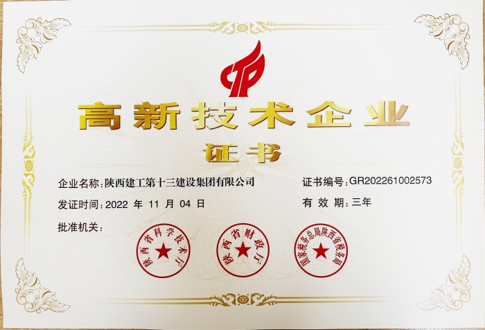 近日,全國高新技術(shù)企業(yè)認定管理工作領(lǐng)導(dǎo)小組辦公室發(fā)布了《陜西省認定機構(gòu)2022年認定的第三批高新技術(shù)企業(yè)備案名單》,陜西建工第十三建設(shè)集團有限公司通過國家級高新技術(shù)企業(yè)認定。