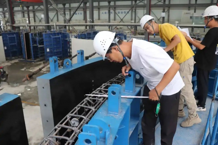 承接任務(wù)后,為確保管片順利澆筑,集團(tuán)新型建材公司統(tǒng)籌部署,科學(xué)組織,嚴(yán)格按照設(shè)計圖紙、技術(shù)生產(chǎn)規(guī)范要求,對現(xiàn)場管理人員、勞務(wù)隊伍進(jìn)行了詳細(xì)的技術(shù)交底,明確了操作規(guī)程;嚴(yán)格把控原材進(jìn)場關(guān),優(yōu)化混凝土配合比,保證管片成品質(zhì)量符合設(shè)計要求;加強(qiáng)協(xié)調(diào)管控,嚴(yán)格按照施工操作要求完成了模具安裝、鋼筋綁扎、塌落度檢測、混凝土振搗等工作。