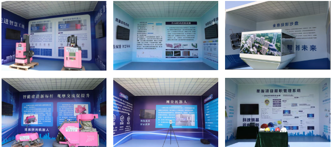 該項(xiàng)目緊扣智能化、數(shù)字化主題,以“設(shè)計(jì)數(shù)字化、施工智能化、管理信息化”為主線,分為“數(shù)字平臺區(qū)、智能機(jī)器人區(qū)、智能設(shè)備區(qū)、四新技術(shù)應(yīng)用區(qū)、展板區(qū)”五大展區(qū),分別呈現(xiàn)了質(zhì)量巡檢系統(tǒng)、BIM技術(shù)過程管理、基坑監(jiān)測系統(tǒng)、地面整平機(jī)器人、地庫抹光機(jī)器人、螺桿洞封堵機(jī)器人、混凝土內(nèi)墻面打磨機(jī)器人、建筑清掃機(jī)器人、地坪研磨機(jī)器人、ALC墻板安裝機(jī)器人等,展示了一系列施工相關(guān)的智能建造技術(shù)和智能設(shè)備,讓觀摩人員贊嘆不已、紛紛點(diǎn)贊。