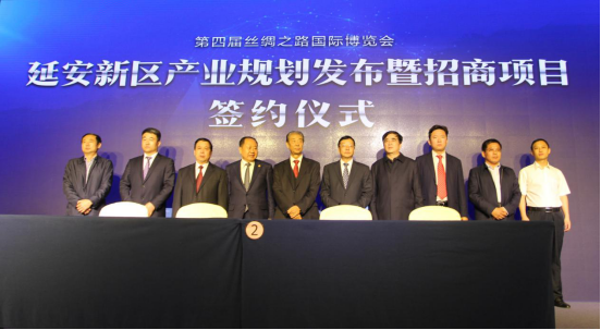 5月13日,西安舉辦第四屆絲綢之路國際博覽會“延安新區(qū)產業(yè)規(guī)劃發(fā)布暨招商項目簽約儀式”。陜西省政協原副主席、延安精神研究會會長梁鳳民見證簽約。延安市委副書記、市長薛占海致辭,延安市委副書記吳鐵主持。